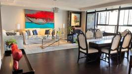 LT 22-9831. Centrico y amplio apartamento en Marbella, con vista a la Ave Balboa y a pasos de la cinta costera, Cerca de hospitales, malls y parques, 220 mts , 3 recamaras cada una con su baño, den familiar, baño de visita, amplia sala comedor y balcon, cuarto y baño de servicio. Incluye linea blanca, aires acondicionados, roller shades en habitaciones y den.