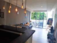 Se alquila precioso apartamento de 105 mts, en piso bajo, remodelado, totalmente equipado y amoblado, listo para mudarse ya. Esta muy bien ubicado en El Cangrejo y cuenta con 2 amplias recamaras, 3 baños completos, 2 parkings y balcón. La recámara principal tiene baño y walk in closet, balconcito y aire acondicionado, además de abanico. El edificio tiene seguridad 24/7 y area social con piscina.