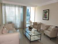 Oportunidad de vivir en moderno e iluminado apartamento amoblado en Obarrio, listo para ocuparse. Con una distribución comoda con 3 recamaras, 2 baños, cuarto y baño de empleada y cocina cerrada. Mobiliario de calidad, balcon con hermosa vista, ph con area social