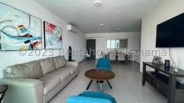 Furnished apartment for rent in Costa del Este. Spacious and bright apartment with 135 M2 distributed in living room, dining room, integrated kitchen, 3 large bedrooms, 3 bathrooms, balcony, additionally has a service room and bathroom and laundry area and 2 parking spaces. The PH offers a social area with a swimming pool, GYM, sports fields and full recreation areas for the family,