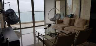 Espectacular apartamento totalmente amoblado y remodelado con vista al mar en prestigioso Ph de la avenida Balboa, 2 recamaras dos baños, 2 parking. Espacio amplio y lujoso en todos sus espacios, trabajo de luces led, aire central rollers automáticas, camas king, 3 tv, vinera, vajillas. Cocina abierta con tope de granito, y totalmente equipada, muebles de lujo, espacioso y cómodo balcón. More...