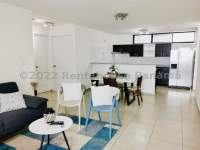 Alquiler de apartamento amoblado en Bella Vista, estratégicamente ubicado a pasos de la Estación del Metro Santo Tomás y en frente de la Cinta Costera. Disfrutarás de un balcón con vistas a la Bahía, 2 recámaras, 2 baños, cuarto y baño de servicio, línea blanca completa y Aires, mas 1 parking techado con 1 depósito justo al lado. Áreas Sociales con piscina, salón de fiesta, Gym, parque infantil.