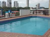 Amplio apartamento amueblado de una (1) recámara y un (1) baño completo, cocina, sala y comedor espaciosos, un (1) estacionamiento privado. La propiedad se encuentra en condiciones impecables y está ubicada en una de las zonas más céntricas de la ciudad capital. Un encantador lobby, muy bien decorado invita a conocer estos acogedores apartamentos, ideales para ejecutivos o parejas que deseen vivir cerca de la zona hotelera y la zona bancaria de Panamá. El edificio cuenta con muy buen mantenimiento, dos ascensores en excelente funcionamiento y un área social muy completa que incluye piscina, gimnasio, sauna de buen tamaño, salón de fiesta y área abierta para reuniones. También cuentan con un área de lavandería común con lavadoras que operan con monedas.