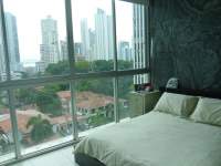 Amplio apartamento de 101 mts , ubicado en el área bancaria de la ciudad de Panamá, con hermosa vista a la ciudad y al mar, cuenta con dos recamara, tres baños, lavandera, balcón , 1 estacionamiento, aire acondicionado, luminarias , TV y muebles (Concept)