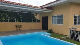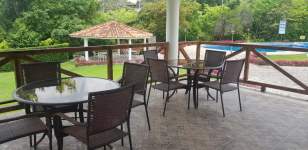Hermosa casa de Campo, ubicada en calle sin salida, cuenta con garita de seguridad, con agradable y desetresante ambiente natural. Completamente amoblada y equipada, tiene su piscina propia, amplio patio, floreado jardin. Ademas de 2 areas sociales, 4 piscinas, parque infantil, bohios, cancha de tenis.
