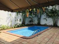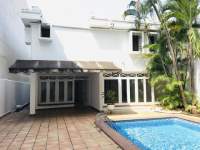 Se alquila casa En Obarrio con excelentes y amplios espacios. Casa cuenta con patio privado con piscina, cuarto y bano de empleada, sala de estudio o den, etc. Viene con aires acondicionados. Excelente ubicacion, calle tranquila y en plena ciudad, a media cuadra de Calle 50 muy cerca de Multiplaza y plazas comerciales con restaurantes, farmacias, tiendas, etc.