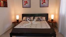 Se compone de 5 grandes dormitorios, todos con baño, con aire acondicionado inverter, con televisor, todos con terraza y todos amueblados. Cocina totalmente equipada y gran salón de estar. El gran dormitorio principal ocupa toda la primera planta con un enorme baño y un vestidor convertible en otra habitación más si así lo desea.