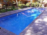 La parcela tiene entrada peatonal y entrada de vehículos, con caminos interiores suficiente iluminados que rodean la construcción y está totalmente cercada. Tiene piscina de 12x4x1.5 metros, i