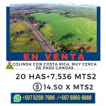 Propiedad en venta más de 20 hectáreas, ubicada muy cerca de Paso Canoas, adyacente a Costa Rica, superficie plana a orilla de carretera principal. Para más información escribir o llamar al * - * ó * -888